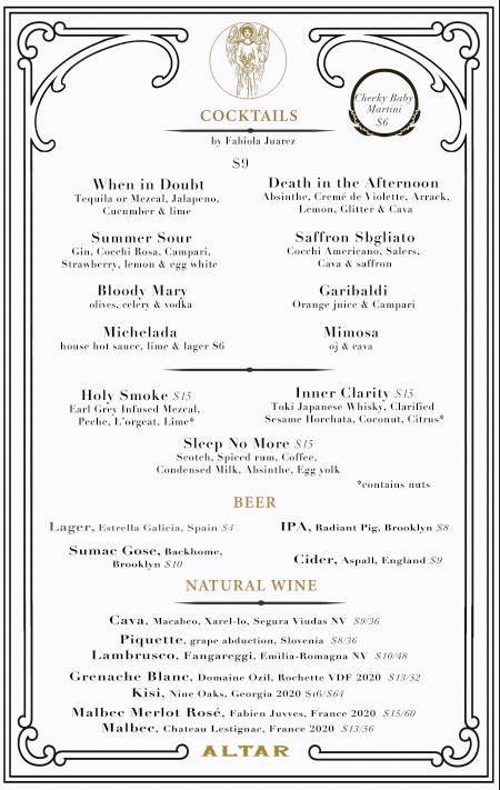 Introducing Altar, a hidden gem located at 645 Sterling Pl, Brooklyn. This cocktail bar combines an inviting atmosphere with expertly crafted drinks to create a memorable experience. The menu features an impressive selection of classic cocktails, including the refreshing Grasshopper and the sophisticated Calvados French 75, ensuring that there's something for every palate.